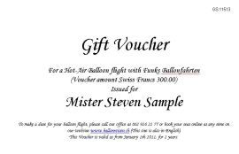 | Gift coupon for a certain amount....This gift coupon is redeemable on any of our balloon flights here in Switzerland