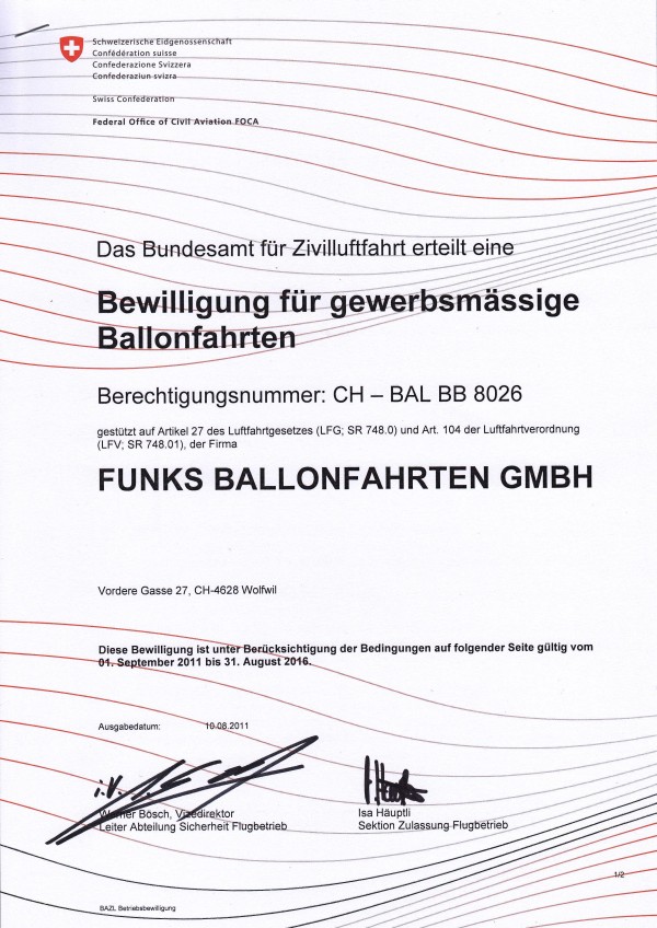 Als ein vom Bundesamt für Zivilluftfahrt (BAZL) konzessioniertes Luftfahrtunternehmen unterliegen wir ausserdem regelmässigen strengen Sicherheits- und Organisationsvorschriften.